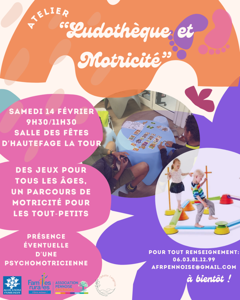 LUDOTHÈQUE ET MOTRICITÉ – Samedi 14 février 2026 – 9h30 11h30 – Salle des fêtes – Hautefage la Tour