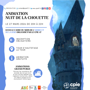 Dans le cadre de l’Atlas de la Biodiversité de la Communauté d’Agglomération du Grand-Villeneuvois et de l’événement “L’Arbre et la Haie” organisé par le CPIE Pays de Serres-Vallée du Lot, nous vous invitons à découvrir les mystères du monde de la nuit lors d’une soirée dédiée aux rapaces nocturnes.